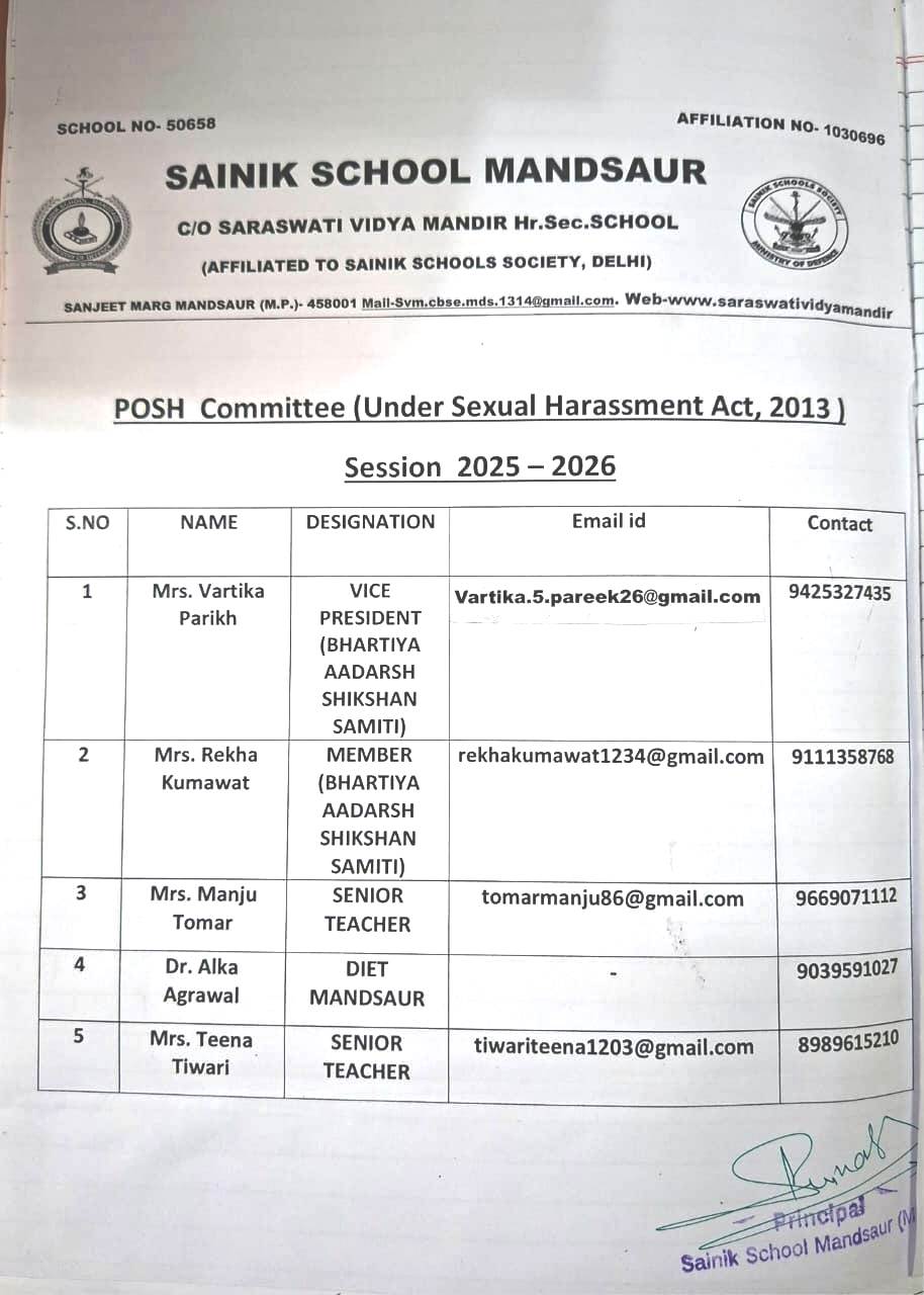 | 4 | ADDRESS | Sainik School Mandsaur,Sanjeet Marg, Mandsaur, 458001 |